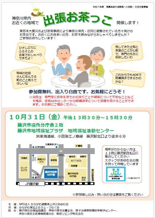 東日本大震災および原発事故により神奈川県・近郊に避難されている方々に参加していただく茶話会です。
