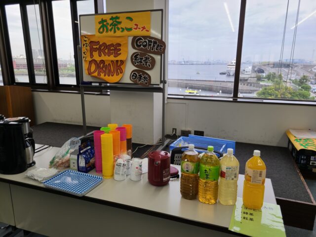 4階の会議室では、お茶菓子と飲み物を用意した談話コーナーが設けられました。