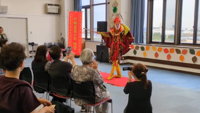 変面ショーは横浜中華街でも見られる中国の伝統芸能で、今回演じている菅原さんは大学生で、父親とコンビで、川崎市を中心として活躍しています。