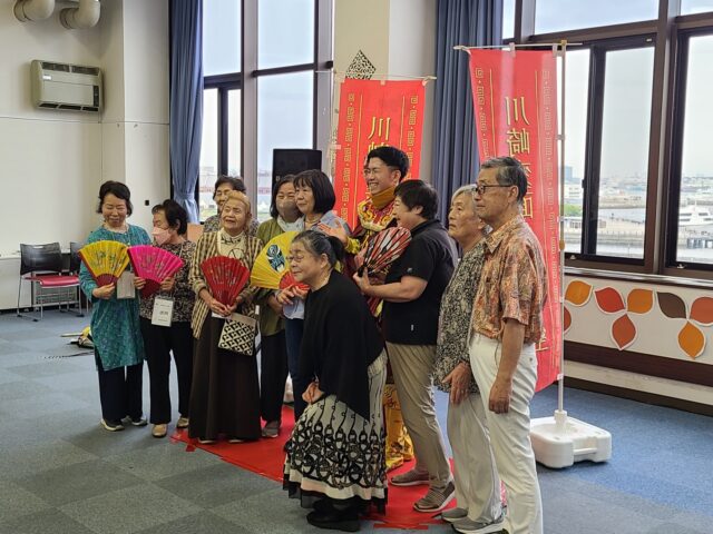 変面ショーで最後に披露されたのは、若々しい素顔の菅原さんで、小学生の時に中華街で変面ショウを初めて見て感激し、その後、練習を重ね技術を磨いてきたこれまでの経緯が紹介されました。鑑賞していた皆さんは競いあって、菅原さんと一緒の記念撮影に収まっていました。