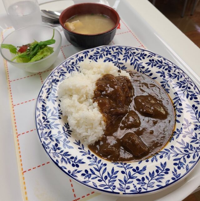 ちょっとスパイスのきいたカレーライスとボリュームたっぷりのハンバーグライスが準備され、どちらかお好みのメニューを美味しくいただきました。