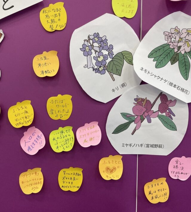 また同じく5階会場には避難当事者団体「かながわ東北ふるさと・つなぐ会」によるメッセージボードが設置され、ご参加いただいた方々から、ふるさとへの想いを一言つづっていただきました。