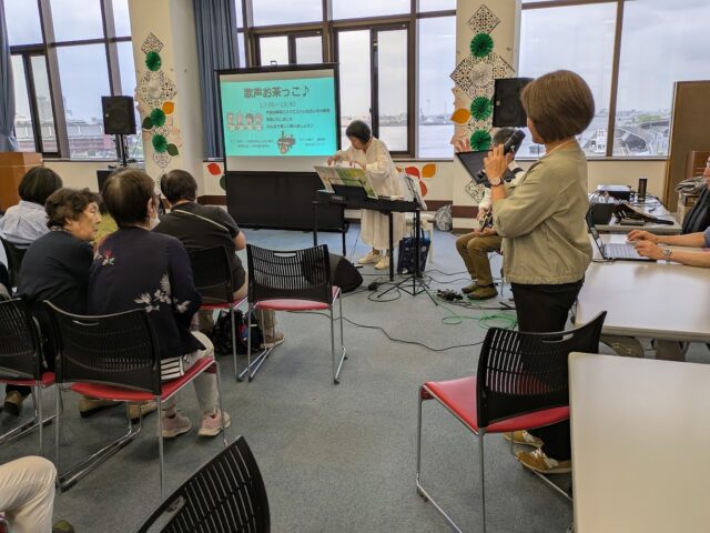 参加された皆さんからのリクエスト曲から、「あの素晴らしい愛をもう一度」などの懐かしい曲が10曲披露され、会場は一段と盛り上がり、最後は当コーナー定番の「翼をください」を横浜の海と空をみながら楽しく歌いました。