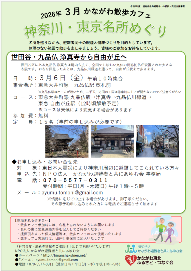 【お知らせ】3/6(金)神奈川散歩カフェ~世田谷・九品仏 浄真寺から自由が丘へ~
