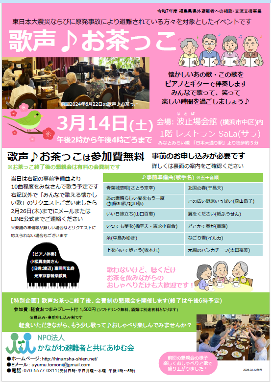 【お知らせ】3/14(土)歌声♪お茶っこ開催
