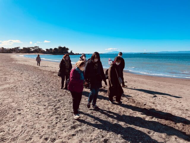 貝を拾ったり、磯をのぞき込んだり、相模湾越しの富士山を眺めつつ、日頃歩くことが無い砂浜散歩を楽しんでいただけたようです。