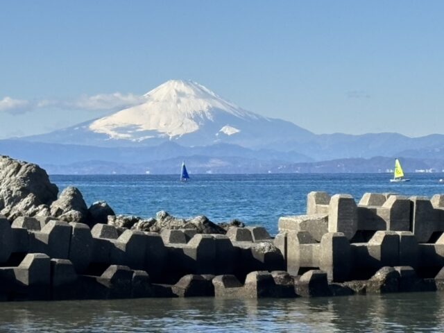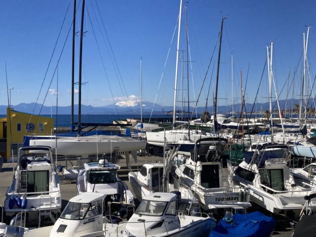こちらでも居並ぶヨットの向こうには富士山が、今回の散歩は富士山堪能コースでした。
