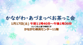 本年最初、「かながわ・あづまっぺお茶っこ会」は1月17日の土曜日に開催いたします。神奈川近郊に避難生活されている方でしたら、どなたでも参加できます。初めての方も大歓迎です。気軽にお越しください。今回は開始時間が11時40分からとなります。