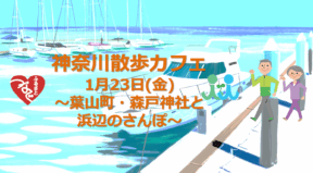 1月の「神奈川散歩カフェ」は23日の金曜日に開催いたします。今回は葉山町を歩きます。神奈川近郊に避難生活されている方でしたら、どなたでも参加できます。初めての方も大歓迎です。気軽にお越しください。